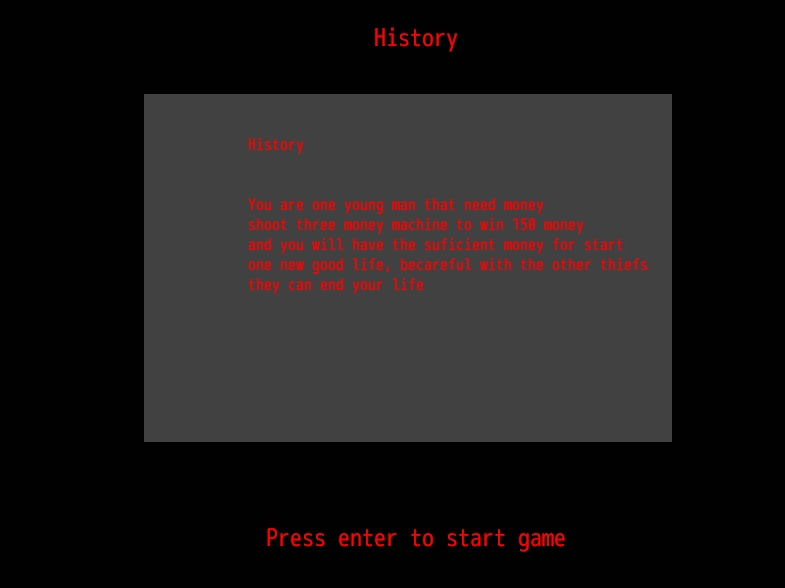This is game is one gta clone for one game jam, you are one man that need stole 150 money from money machines in the city